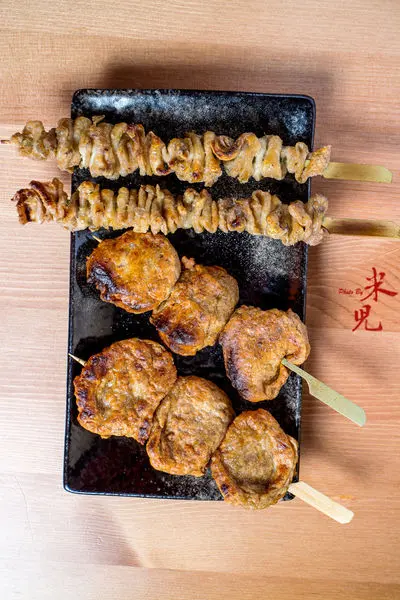 鹽烤雞皮,100大洋;手作天婦羅,80大洋。雞皮處理起來有點麻煩,但是這裡的雞皮,脆香中吃得到有點黏嘴的口感,我每次都想一個人罷佔二串。手作天婦羅則有別於外面的甜不辣,吃得出扎實的魚漿甜度,外酥內軟Q~~吃過的都喜歡!