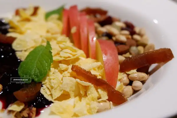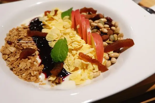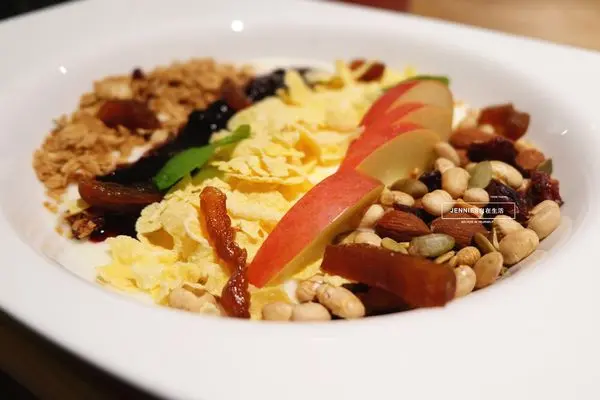 中午因為胃口不大,所以點了水果優格,沒想到還是吃不完,滿滿一大碗,裡面使用了無糖優格搭配麥片及水果還有堅果,營養健康,熱量應該也還好~