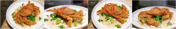 今天一起吃了這道料理,覺得還不錯!味噌的香氣有出來,裡面還加了洋蔥、薑、蒜及蟹肉去炒鮭魚,上面的軟殼蟹炸的酥酥脆脆,而且一整隻的軟殼蟹比我們上次去吃某間的軟殼蟹已肢離破碎要好看多了!