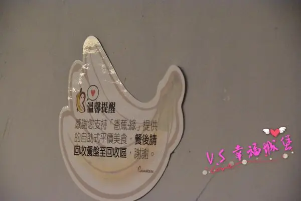 樓梯旁的燈箱上的字句很有意思,應該是「BANAGREEN香蕉.綠」的理念,提供多種蔬菜,也有配咖啡的輕食甜點。