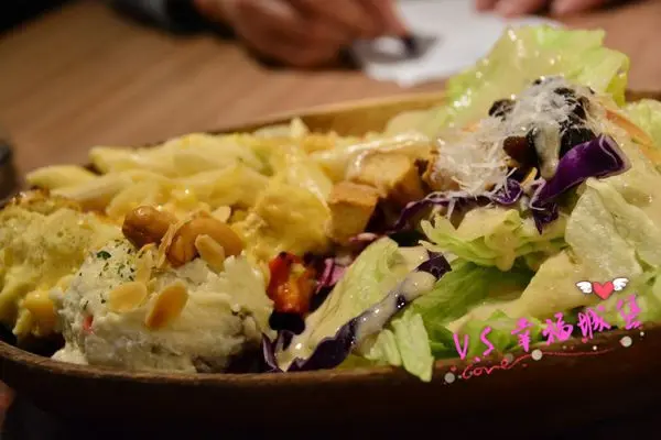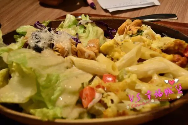 其實,V女王覺得香蕉綠的賣點是 ~ 沙拉,且他的沙拉好大盤喔 !