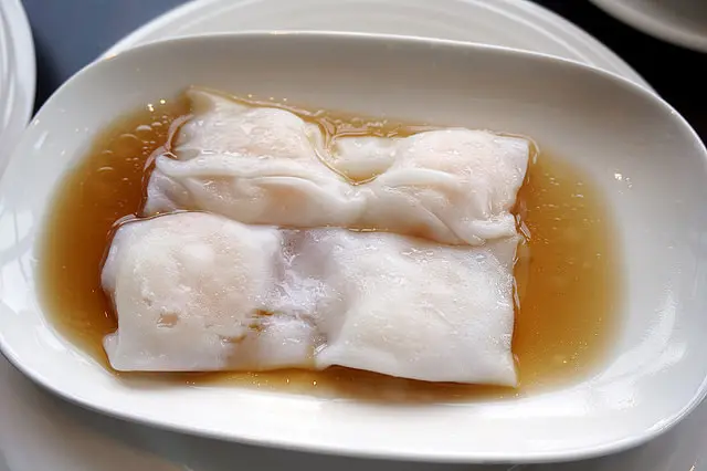 旁邊也有現作腸粉,有牛肉或蝦仁。我點的是蝦仁腸粉,覺得皮稍厚了一點。