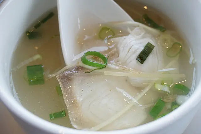 這是內湖店才有的"現煮魚湯",上面放的是鯛魚片。
