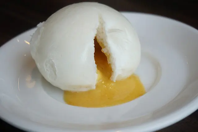 這個流沙包超好吃,記得要跟蒸籠推車拿!