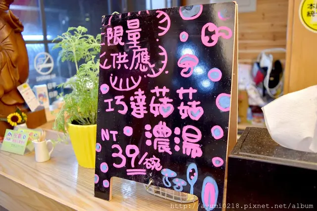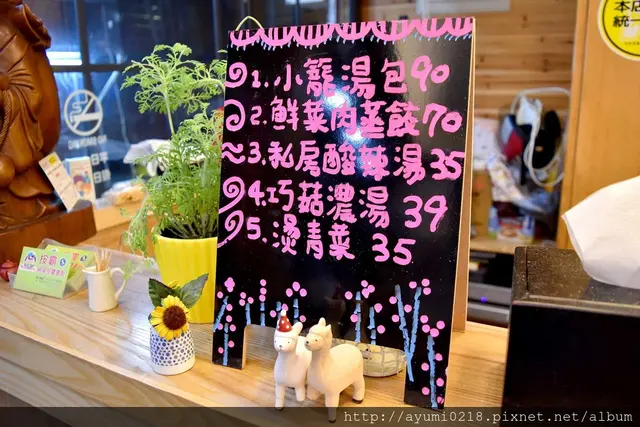 超可愛的字體.餐點種類不多.就是多了燙青菜X兩款湯品
