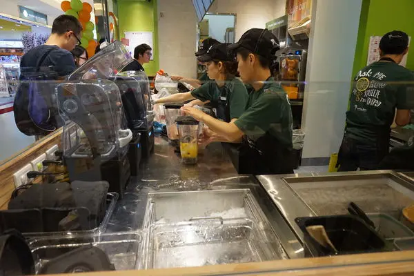 結完帳後就在旁邊欣賞果汁機快樂攪拌的聲音和店員的活力吧!!!