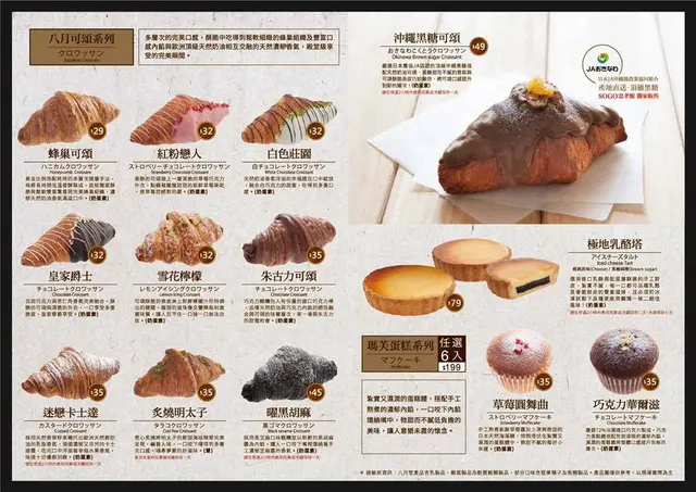 有法式莓果、黃金起士可頌、粉紅戀人、蜂巢可頌