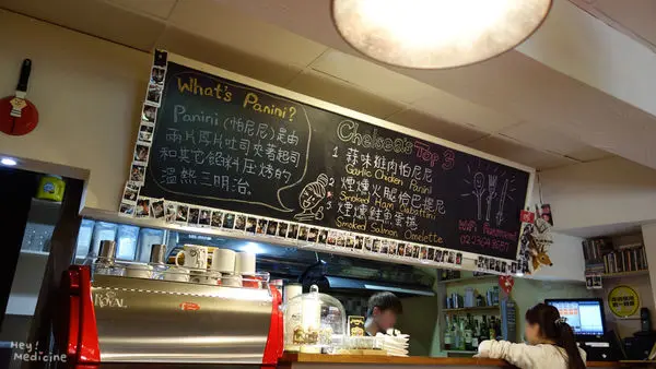 店員很客氣的問我們要不要重做一份,不過因為他已經吃掉很多了,再吃一份應該吃不太下,所以就算啦、乖乖的吃完這份錯誤的帕尼尼囉。(事後苦主依然很沮喪,因為沒有吃到雞肉)