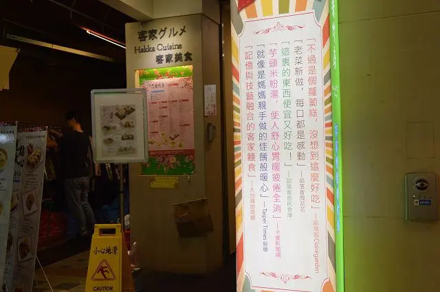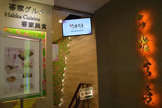 雖然店家位於隱密的地下一樓,但入口處還滿引人注目的,而且有置放菜單供參考。光是這入口門面我就覺得與一般客家料理餐館有所不同,呈現的是一種結合客家元素與新穎時尚風格的氛圍。