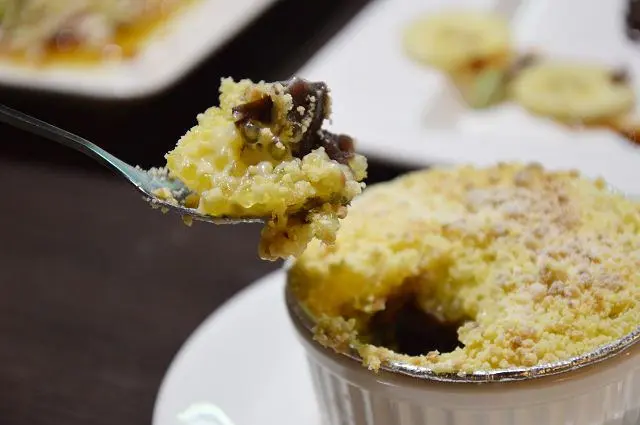表層有著香酥口感,內餡則有綿密的卡士達醬、Q彈的西谷米以及軟綿的紅豆餡。印象中應該是第一次吃到這道甜點,也由於裡頭有著香濃的紅豆,所以頗受寶小銘喜愛。