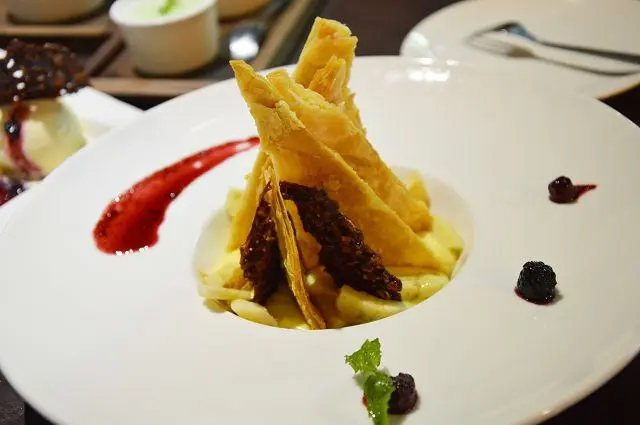 「鮮果卡士達千層」(138元)~~這道甜點擺盤真是精緻,彷彿就像是藝術品般。
