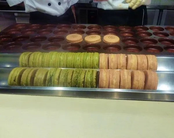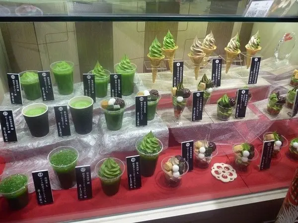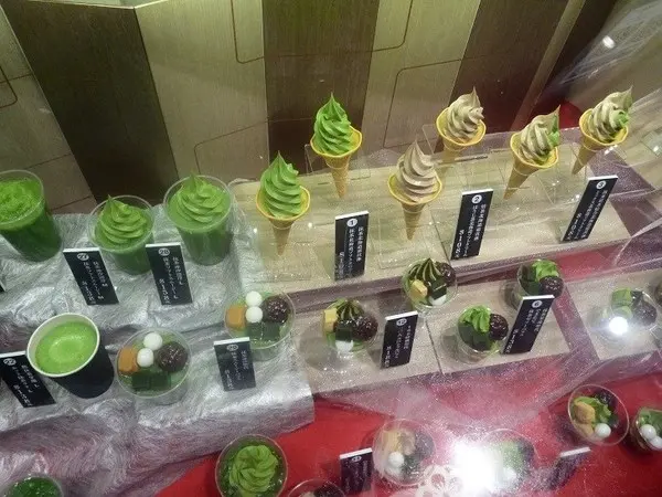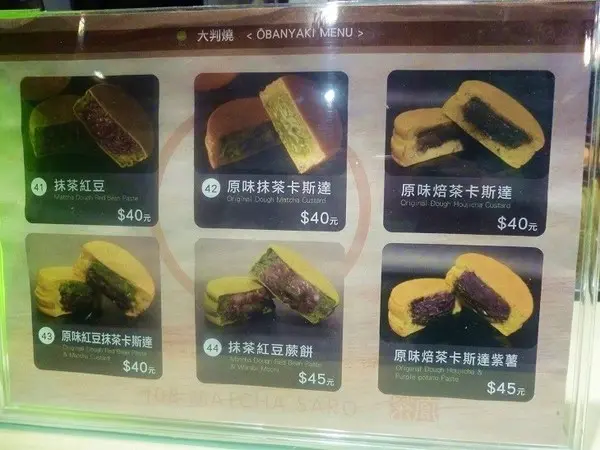 先來觀望一下這家店的商品,尤其是櫥窗前的一群抹茶甜點,除了抹茶霜淇淋,還有抹茶飄浮,抹茶聖代,以及單純的抹茶冰,每一樣抺茶商品展示,好像選美大會一樣,真的好想每一樣都吃一口.再來是大判燒,其實是比較厚實的車輪餅,單價約40元或45元,以抹茶和焙茶口味為主,加入紅豆,厥餅和卡士達當內餡,看起來也是相當誘人,很適合作下午茶點心.