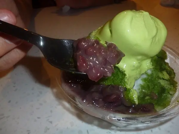 抺茶冰最精彩的地方就是刨冰堆起的綠色山丘,可以任意加喜歡的配料,讓抹茶山丘看起來更有氣勢,雖然價格不便宜,室內吹冷氣吃冰身体會不自主的發抖,但還是願意臣服抹茶刨冰的魅力下,抹茶冰獨特的茶香韻味,與水果和甜點當道的冰品,形成一種對比,喜歡什麼樣的抹茶冰品?各位有機會可以嚐試看看.