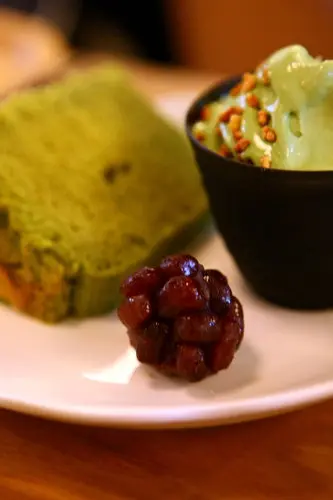 抹茶戚風搭配抹茶霜淇淋,附一小顆鹿子餅~沒記錯這套是120大洋。