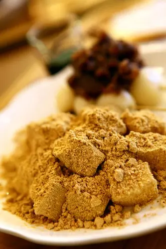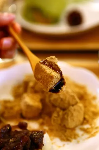 這裡的蕨餅偏軟,但是黃豆粉還挺香的。