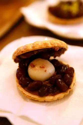 現在這裡也賣最中,有栗子和麻糬二種口味,這是栗子的,裡頭的紅豆也煮得很好,有紅豆泥和紅豆顆粒加上栗子碎製造多層次的口感,一個60大洋。