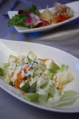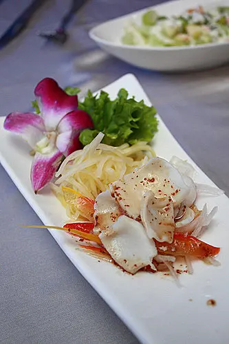 和風沙拉~以青木瓜佐和風醬汁加上花枝整體裝盤很有南洋風