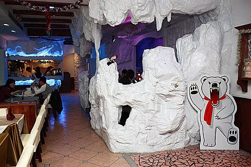 北極光的內部裝潢風格以北極天寒地凍的景象來呈現還蠻有創意的
