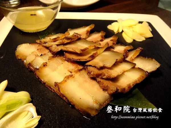 叁和炙塩豚 三層肉看似很油膩, 吃來卻是彈牙而吃不出肥油的感覺, 配上一點蒜苗及大蒜片, 沾上加了馬告的特製醬料, 好吃度破表, 酸酸甜甜又帶點馬告香氣, 令人難忘它的好!!也是大推必點好菜之一!