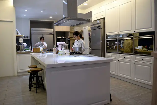 明亮透明的工作室 點心師傅專心於手邊的烘培