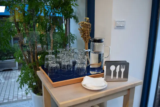 自取的水杯餐巾紙.水杯也是質感較佳的玻璃杯