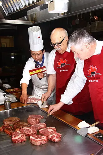 主廚和加拿大經貿辦事處官員們一起下廚煎牛排~香氣四溢~