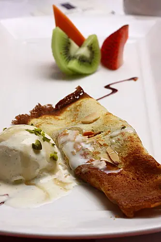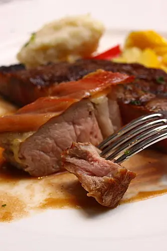 小牛肉吃起來有一點像豬肉,主廚在上面加了一片薄火腿去烤,增加風味~