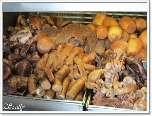 沒一會兒就切成滿滿的一盤,有豆干、海帶、素雞、百頁、豬頭皮、松阪豬、大腸,每一種都煮的入味又香又好吃!