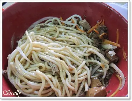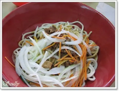 炸醬麵$ 50 : 滿大一碗的,有洋蔥絲和胡蘿蔔絲,炸醬味到剛剛好又香,麵煮得QQ會彈牙,棒!