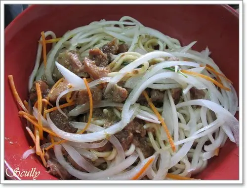 麵吃起來像是較細小的烏龍麵,但是比烏龍麵有彈性和嚼勁