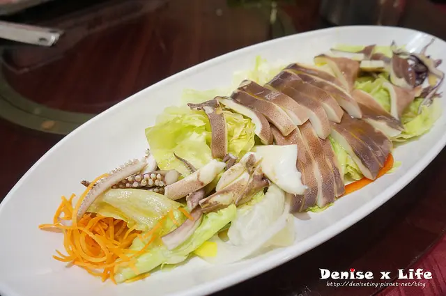 隨後就上了前菜中卷,搭配生菜佐酸佶醬汁偏清淡爽口