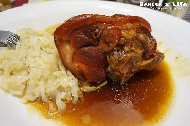 一般紅燒圓蹄搭配筍絲入菜,海霸王選用高麗菜乾而成,高麗菜乾要沾上滷肉醬汁才好吃