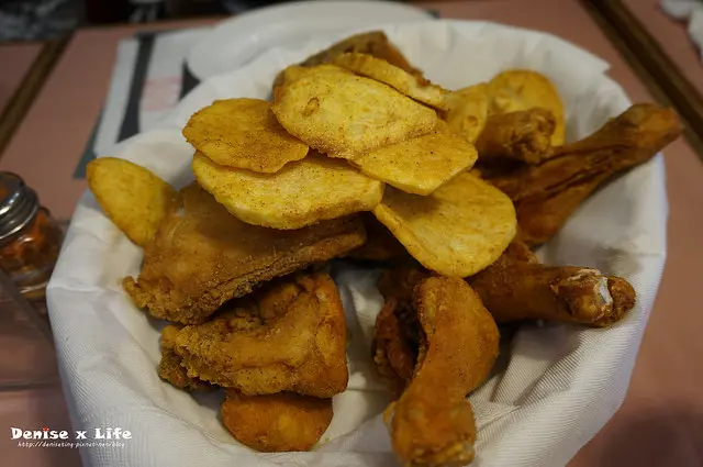 馬鈴薯片屬厚片款,口味對Denise來說偏鹹,還是最愛炸雞