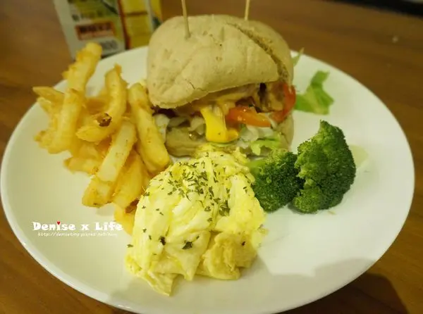 花生醬牛肉起士堡-附有鮮嫩炒蛋、爽口花椰菜及酥脆炸薯條