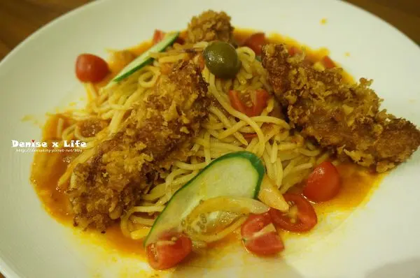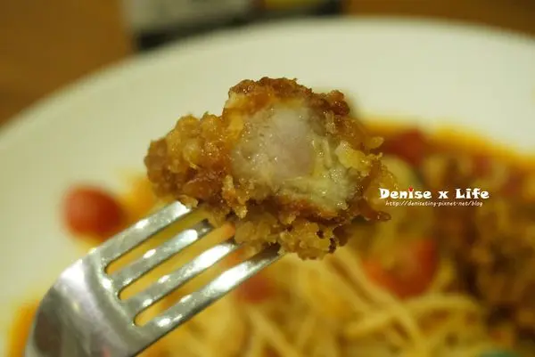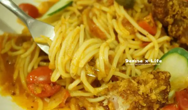 少見茄汁義大利麵加入了橘汁加入拌炒,除了原先的酸味外還多了微甜的橘汁風味讓義大利麵更加爽口