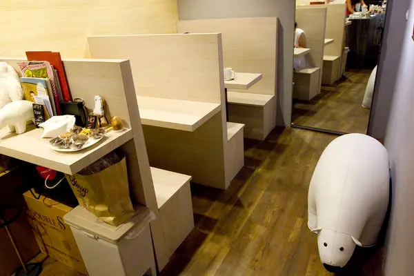 在空間利用上發揮到極緻的境界,小小的長窄形區域巧妙的隔出一個四人座及二人座的位置,
