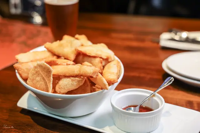 JOLLY的蝦餅非常特殊,有別於常見的圓形切塊蝦餅,他們直接做成長形的像是薯塊狀,直接用手食用起來很方便,外皮酥脆不油膩、內餡蝦味濃郁,沾上梅子醬也十分對味,是當天我最喜歡的餐點。