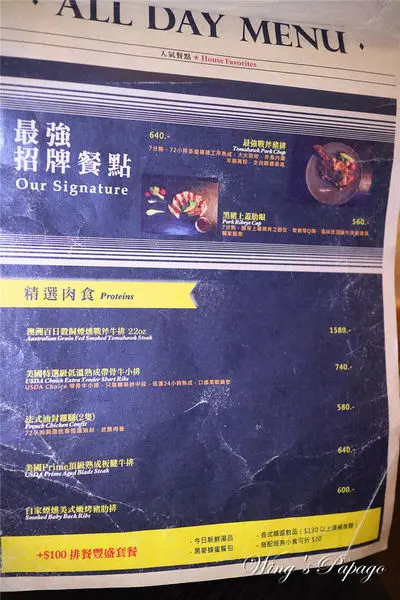 有2人及5人套餐推薦,單點則有最強招牌餐點如戰斧豬排、黑豬上蓋肋眼,
