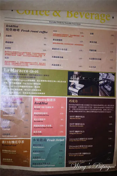 飲品則提供現烘咖啡、莊園單品咖啡、進口有機花草茶、精選茶、水果飲品、巧克力飲品等,