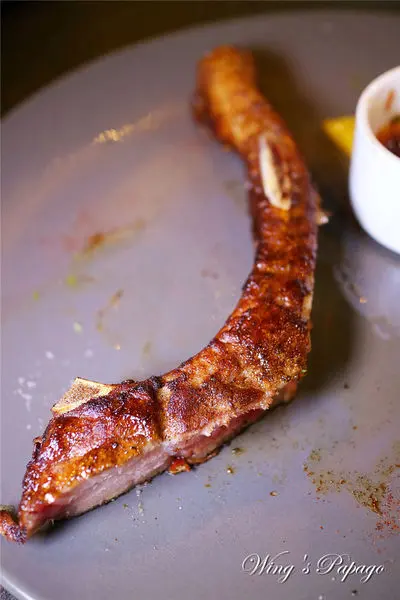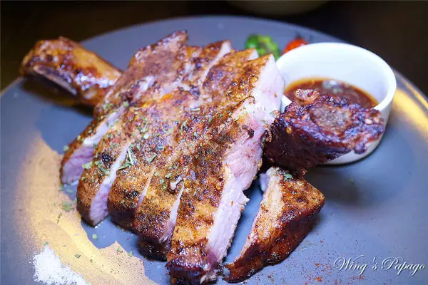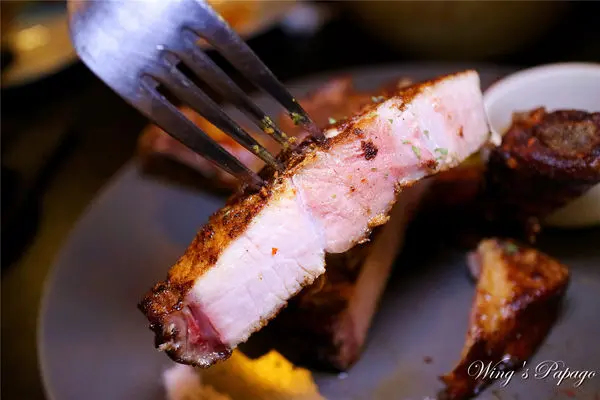 嚐來鮮美嫩口,單吃就香氣十足,沾點海鹽則更能襯托戰斧豬排的美味,