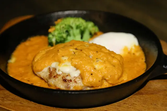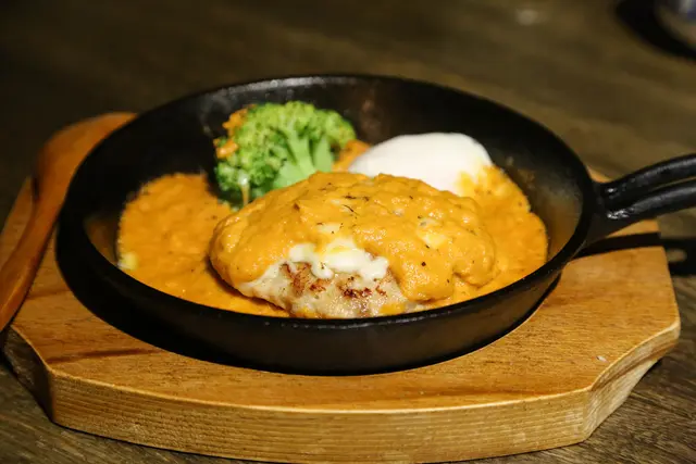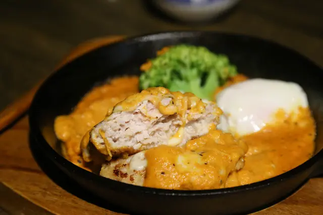 特製雞肉漢堡排佐溫泉蛋