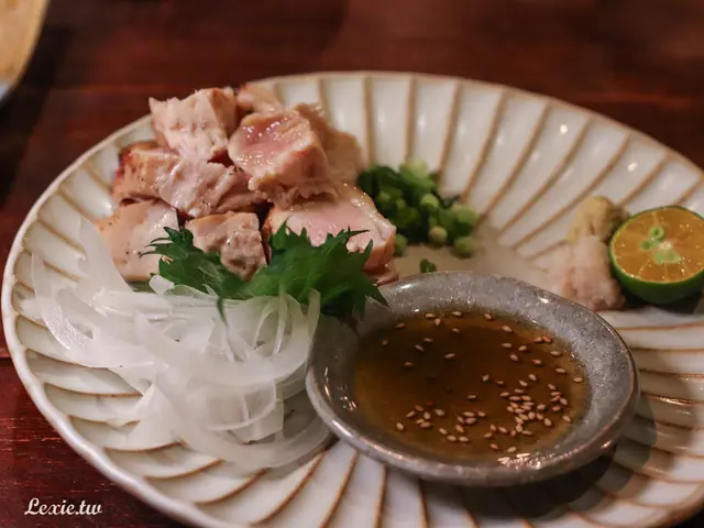 清爽的開胃菜,上面的醬料使用的是日本味噌,經過店家調配,帶著鹹香的發酵香氣,配上脆口的黃瓜挺不錯。
