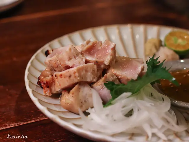 蔥烤得比較焦一點有點可惜,雞腿肉肉質Q嫩,表現也不錯。京丘的醬料嘗起來的確是不死鹹,但有時候我覺得有點調味過淡。