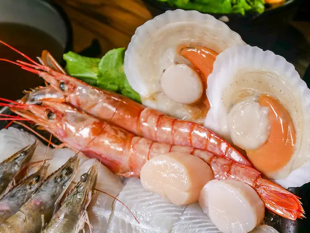 很厲害的海鮮盤,光看就相當吸引人,無論是蝦或是蛤蜊都品質相當好。還有兩個大扇貝和大蝦,干貝也是生食級的
