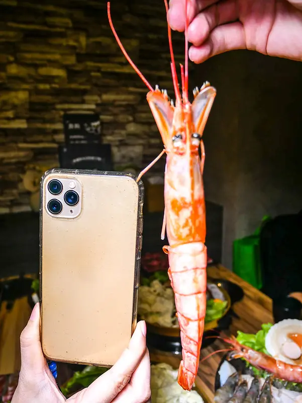 這蝦有多大呢,拍了一張比例,搭配的是iphone,比iphone還長。吃起來相當過癮