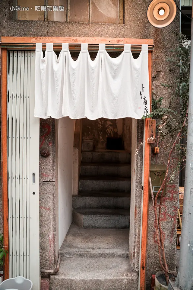 沒有斗大的招牌,,日式門簾讓它帶著淡淡的神秘感,現在認明二樓滿滿人潮就能找到