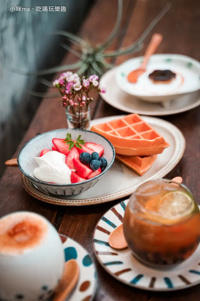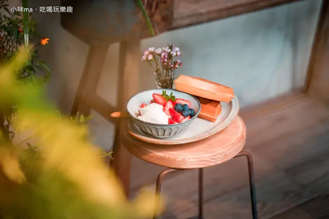 前面的小碗裝了新鮮草莓、藍莓,鮮奶油吃起來不會太甜膩,整體來說還蠻清爽的