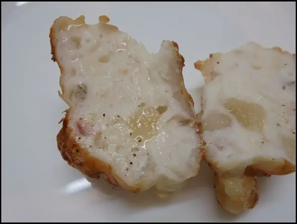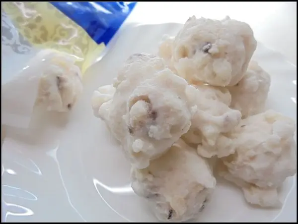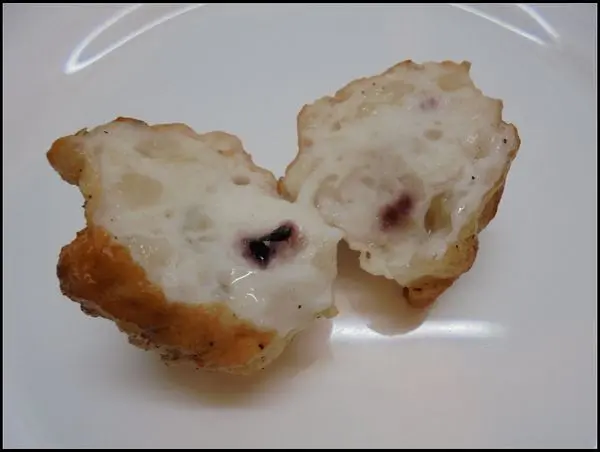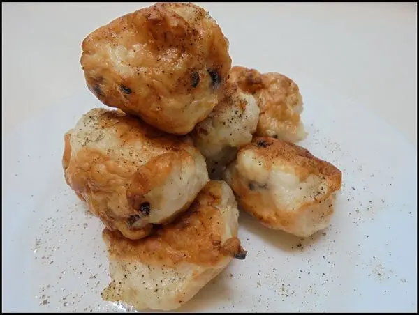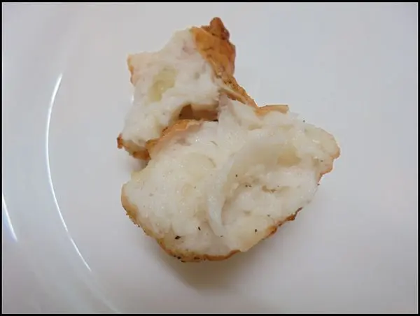 做成丸子後,裡頭的小蒜粒變成軟軟的顆粒,