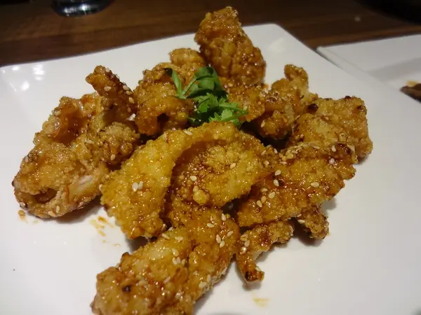 是花枝小捲裹粉後炸過 再淋上特製蜜汁的感覺
