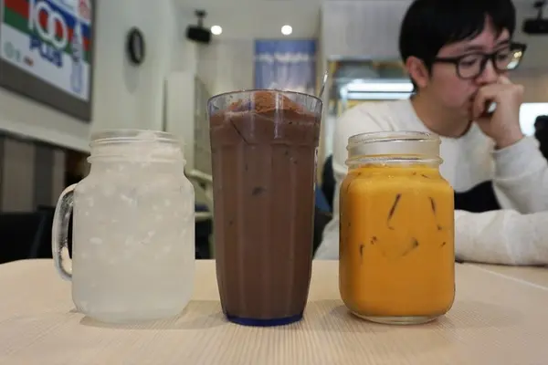 想來點清爽系的椰子水很適合,喜歡濃郁巧克力的就選擇霸氣的美祿恐龍,像我想要來點保守卻又道地的馬來西亞風味,那奶茶就非常適合我